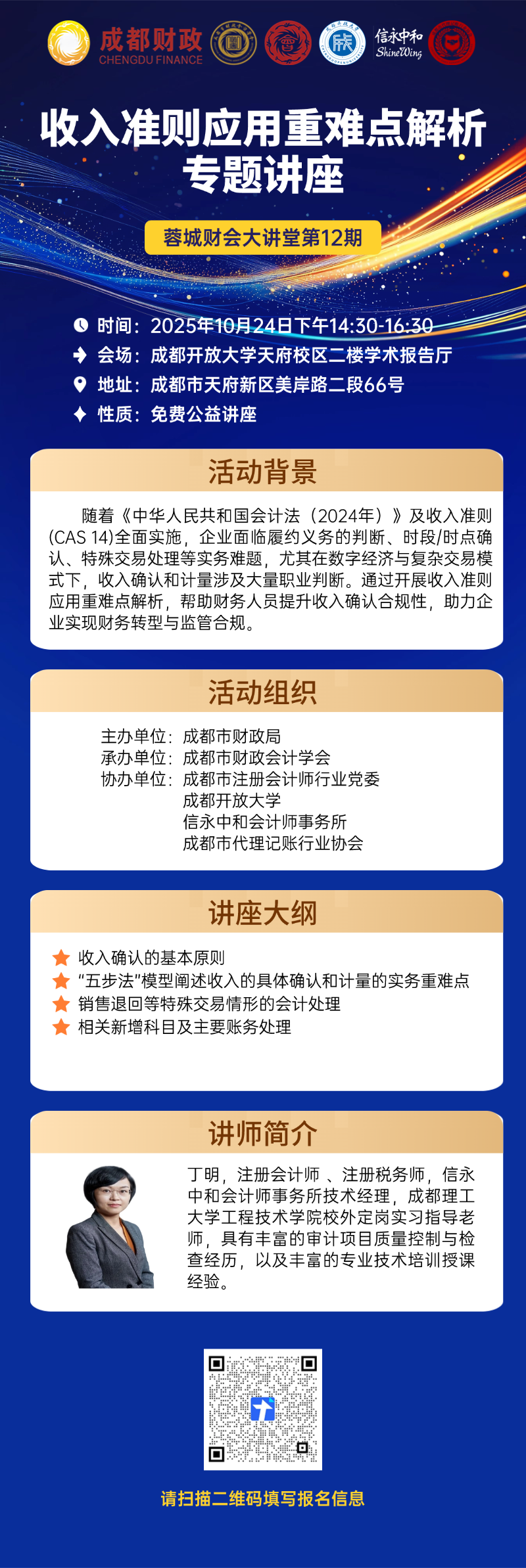 蓉城财会大讲堂第12期 | 收入准则应用重难点解析专题讲座火热报名中!