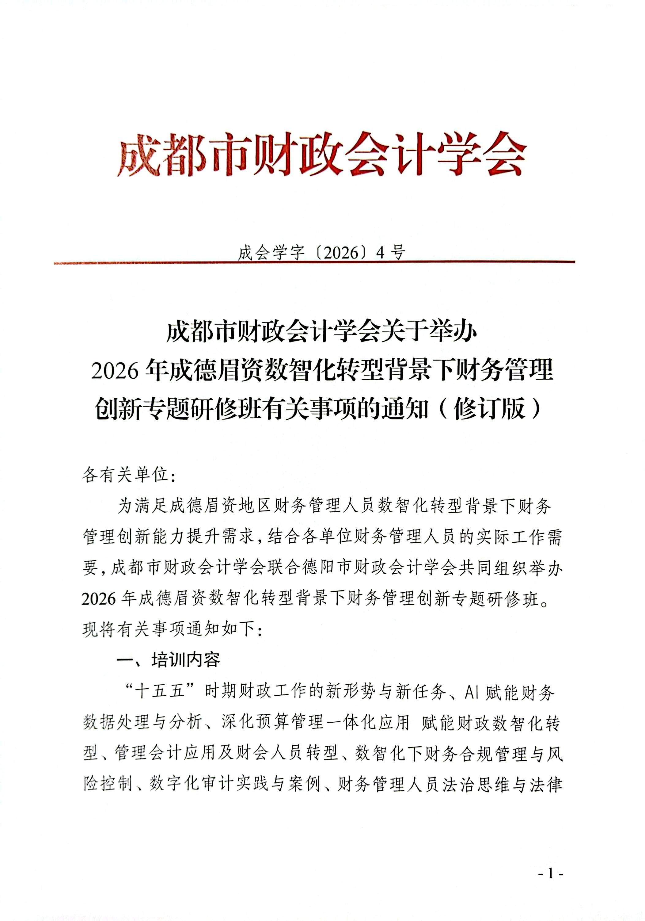 2026年成德眉资数智化转型背景下财务管理创新专题研修班有关事项的通知(修订版).pdf